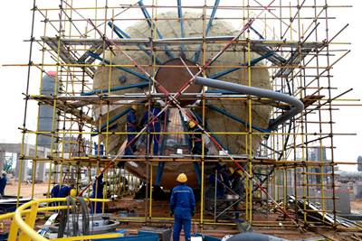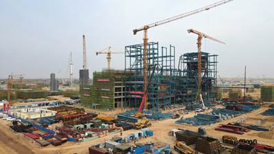 值得一提的是,項目核心乙醇裝置長周期設備陸續交貨到場安裝就位;土建施工總體完成73%,主要建筑物開始裝修,落地設備基礎交付安裝,壓縮機廠房及其基礎施工正在按計劃進行;裝置安裝工作全面推進,7臺反應器全部安裝完成,核心塔器正進行現場安裝攻堅。與此同時,熱動力站也在快馬加鞭的進行,目前鍋爐汽輪機房主體結構施工和裝修正已同步啟動,1號鍋爐鋼結構安裝完成,鍋爐及附件基本安裝完畢;2號、3號鍋爐正進行鍋爐鋼結構安裝,全力為今年11月鍋爐點火做好準備。