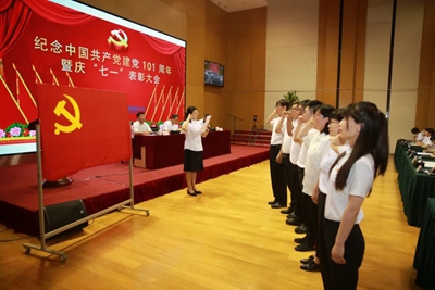 大會(huì)在雄壯的國(guó)歌聲中拉開(kāi)序幕,參會(huì)人員著裝整齊,佩戴黨員徽章,莊嚴(yán)肅立。在公司黨委副書(shū)記、總經(jīng)理田偉同志的帶領(lǐng)下,預(yù)備黨員高舉右手,緊握拳頭,莊嚴(yán)宣誓,立下自己對(duì)黨忠誠(chéng)的誓言,表達(dá)了為黨的事業(yè)奮斗終身的決心和愿望。