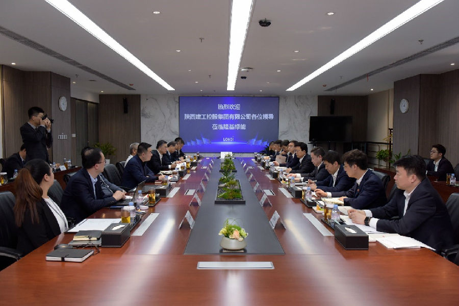 3月9日,陜建控股集團黨委書記、董事長張義光率隊赴隆基綠能科技股份有限公司,與隆基綠能總裁李振國座談交流,雙方就進一步深化務實合作,推動產業融合進行了深入交流。