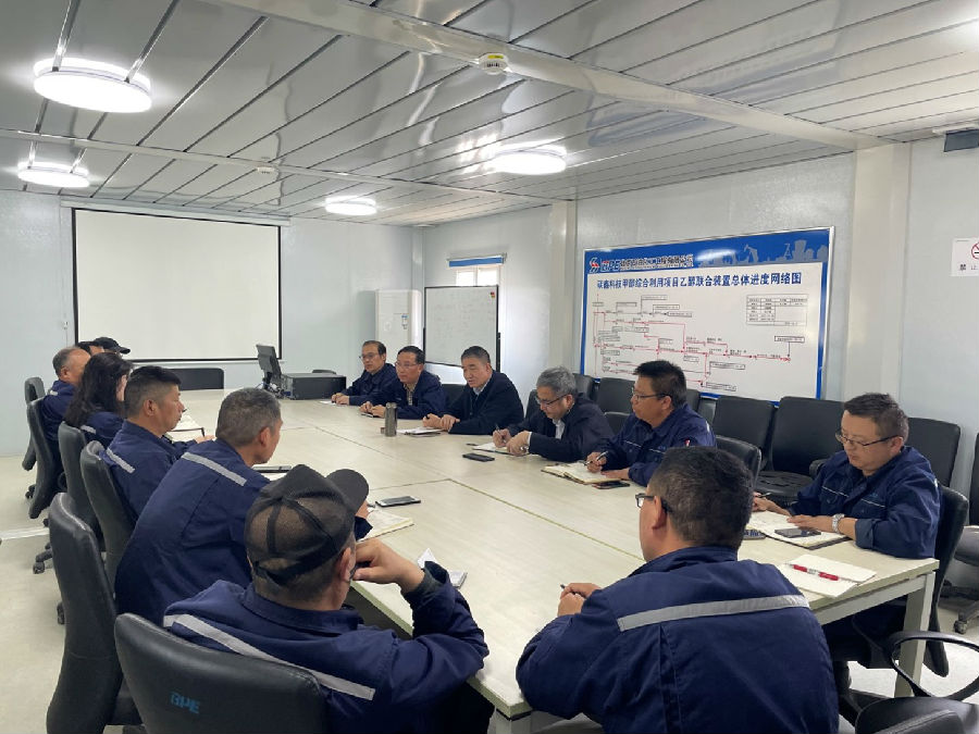 近日,北京石油化工工程有限公司(簡稱:北油工程)黨委書記、董事長許緘濤到公司EPC總承包的安徽碳鑫科技有限公司(簡稱:碳鑫科技)甲醇綜合利用項目乙醇聯合裝置調研指導工作,公司副總經理、總工程師曹堅,項目部主要領導陪同調研。
