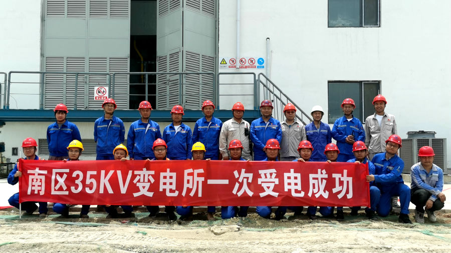 南區35kV變電所內設35kV和10kV配電裝置、2臺31500kVA 35/10kV主變、6臺2500kVA干式變壓器和低壓配電柜,為南區所有裝置、輔助設施及公用工程單元用電設備供電,其兩回路電源分別來自110kV正泰甲醇變電站及110kV正泰臨白變電站,通過35kV電纜接至變電所內35kV開關柜。建設期間,項目組精細化管理,有效控制設備訂貨、巡檢催交、設備安裝及調試等環節,為本次一次受電成功打下堅實的基礎。