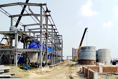 為完成全年任務目標,由公司總承包的孟加拉甲醛項目組全力沖擊四季度建設進度。目前,項目總體已完成88%,其中鐵鉬法及銀法甲醛裝置完成全部設備的安裝,配管完成65%;鍋爐房、空氮站、循環水場、儲罐區完成全部設備及管道安裝,目前正在進行電儀安裝;原水泵站、電玉粉4線及6線、汽車裝卸設施上部結構完成75%;全廠地管完成回填工作。項目的快速推進得到業主肯定。