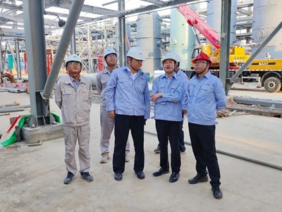 8月20日,北京石油化工工程有限公司黨委書記、董事長許緘濤帶隊到公司總承包的湖北荊門源晗電池材料有限公司電解液全驅體項目20萬噸/年乙醇裝置(含電子級乙醇)開展實地調研。當前項目總體進度達70%,其中設計工作全部完成,采購進度完成86%,施工進度完成65%,各項工作正按計劃有序推進。公司總經理助理張文立、項目負責人陪同調研。