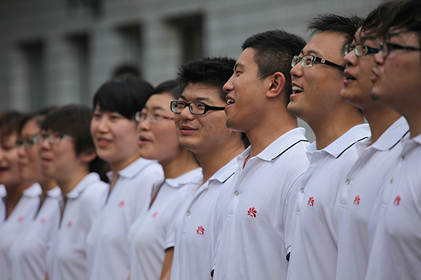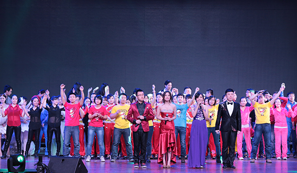 年會(huì)上,公司合唱隊(duì)首次登臺(tái)演出